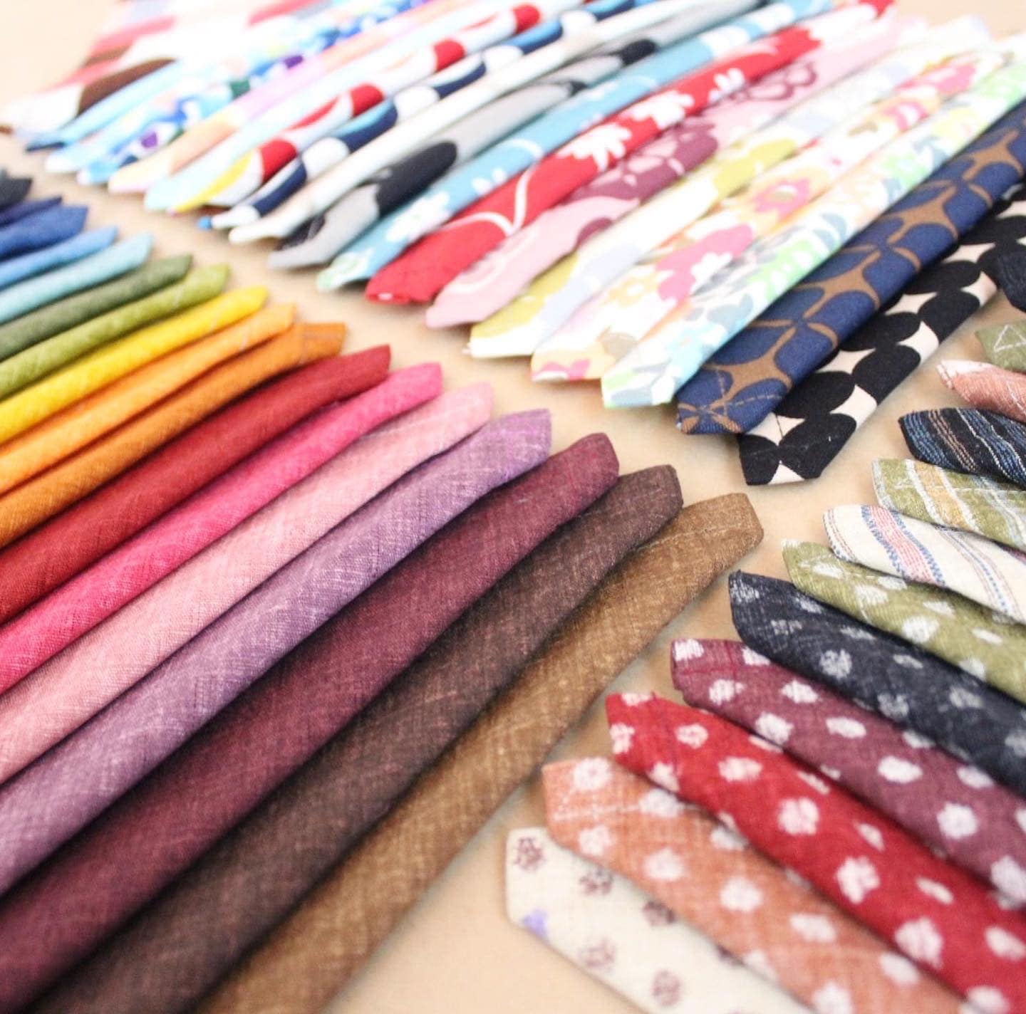 選べる生地は、50種類以上。趣きある風合いの無地や、可愛い色北欧調、ほっこり和柄など、色とりどりのたくさんの生地から、お気に入りを選べます。こでしか出会えない、warara限定の生地も!