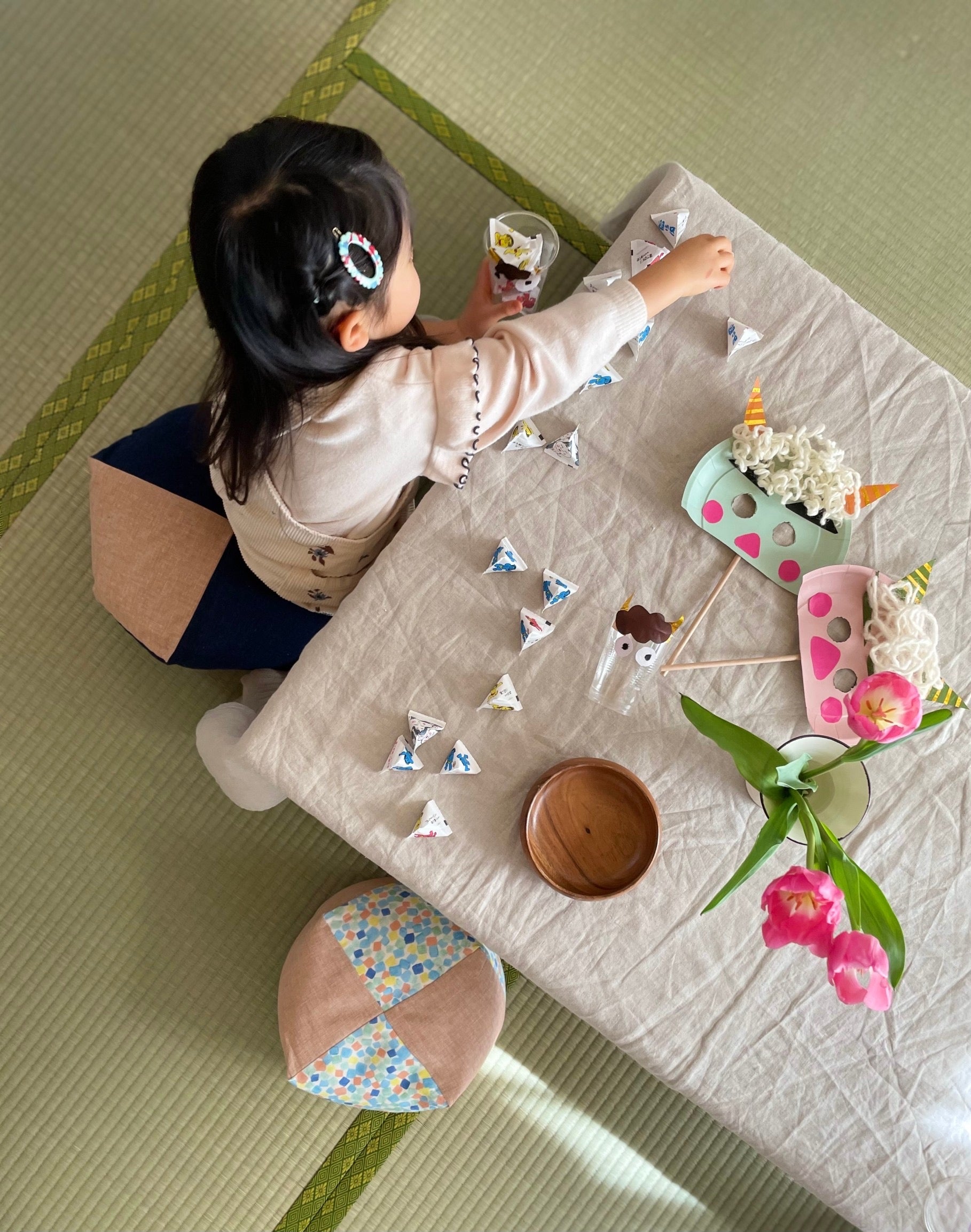 “おじゃみkids”に座れば、丁度よい高さ。