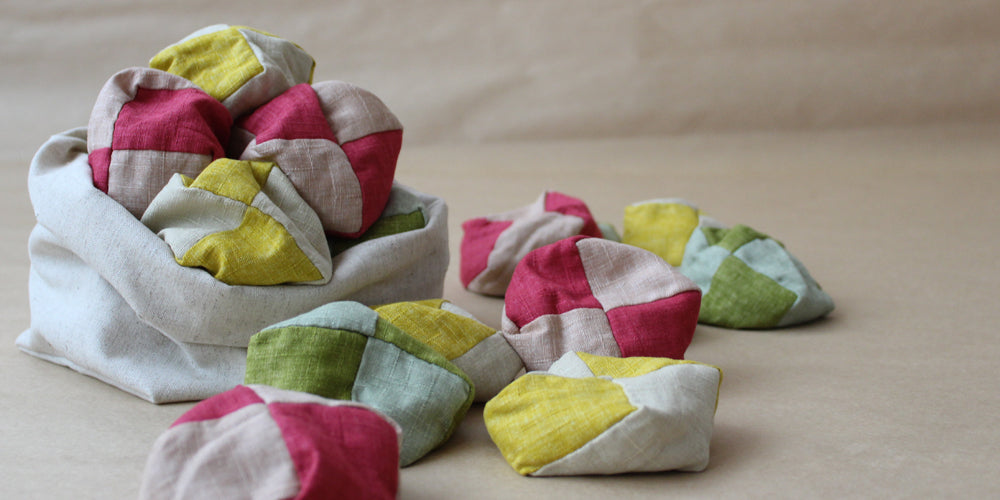 わたの片寄りや生地のずれを防ぐために中央に施される綴じを施すことで生まれる、この絶妙なくぼみ。このくぼみがおじゃみに座り、おじゃみを背に当てる際、身体に自然となじみ、心地よく受け止めてくれます。