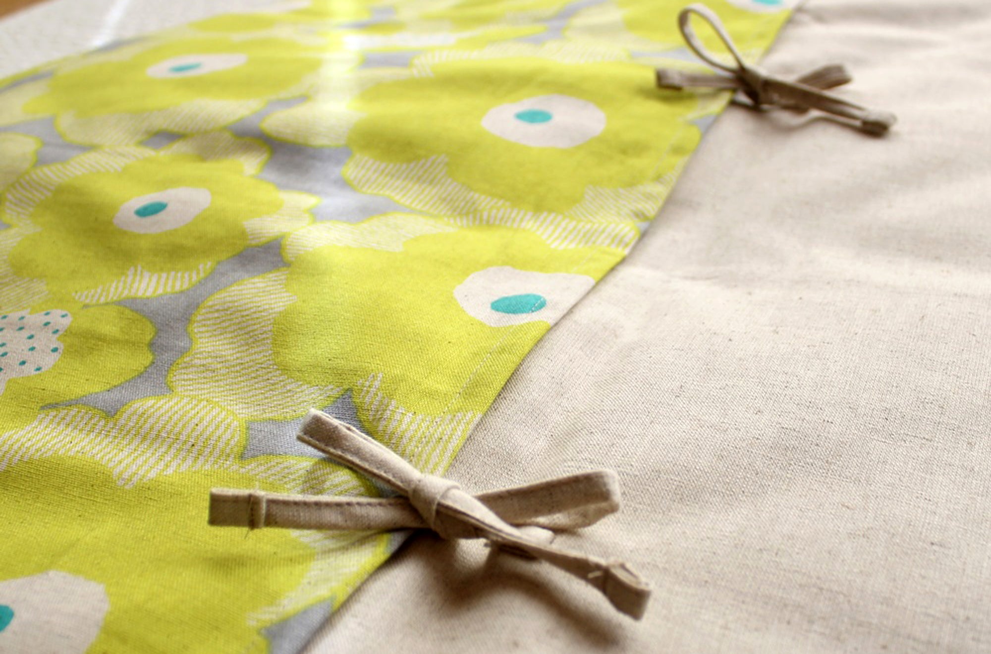 カバーは、裏側2ヶ所を紐で結ぶタイプ。簡単に着脱ができ、お家の大切な床も傷つけません。